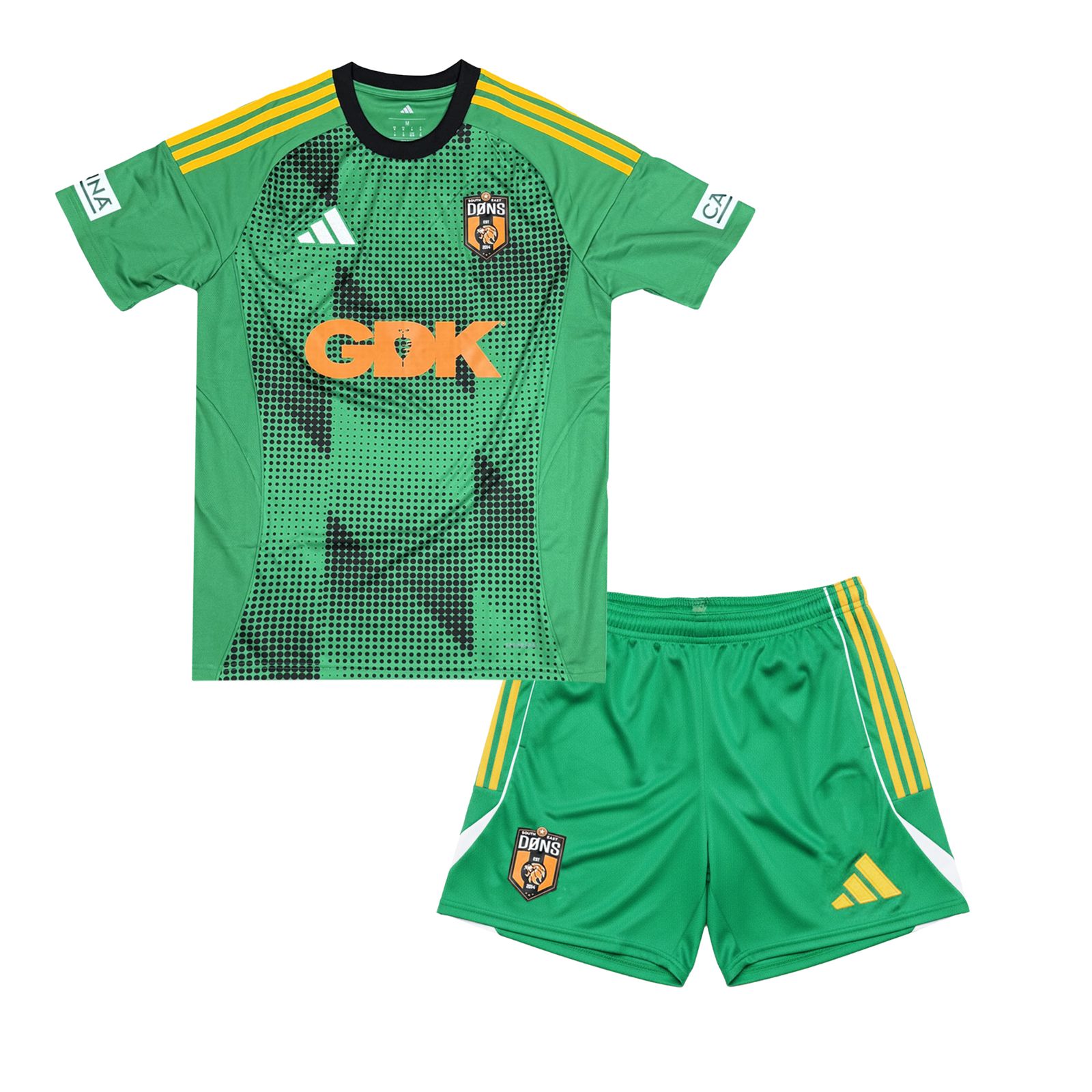 Introducing The GREEN SMOKE… The SE DØNS 25/26 Home jersey. We’ve partnered with Adidas this season for our most ambitious design to date. Yellow stripes, Canna on the sleeves, Tekkers on the back… and who else but GDK on the front. Celebrating 5 years of sponsorship with The Dons!