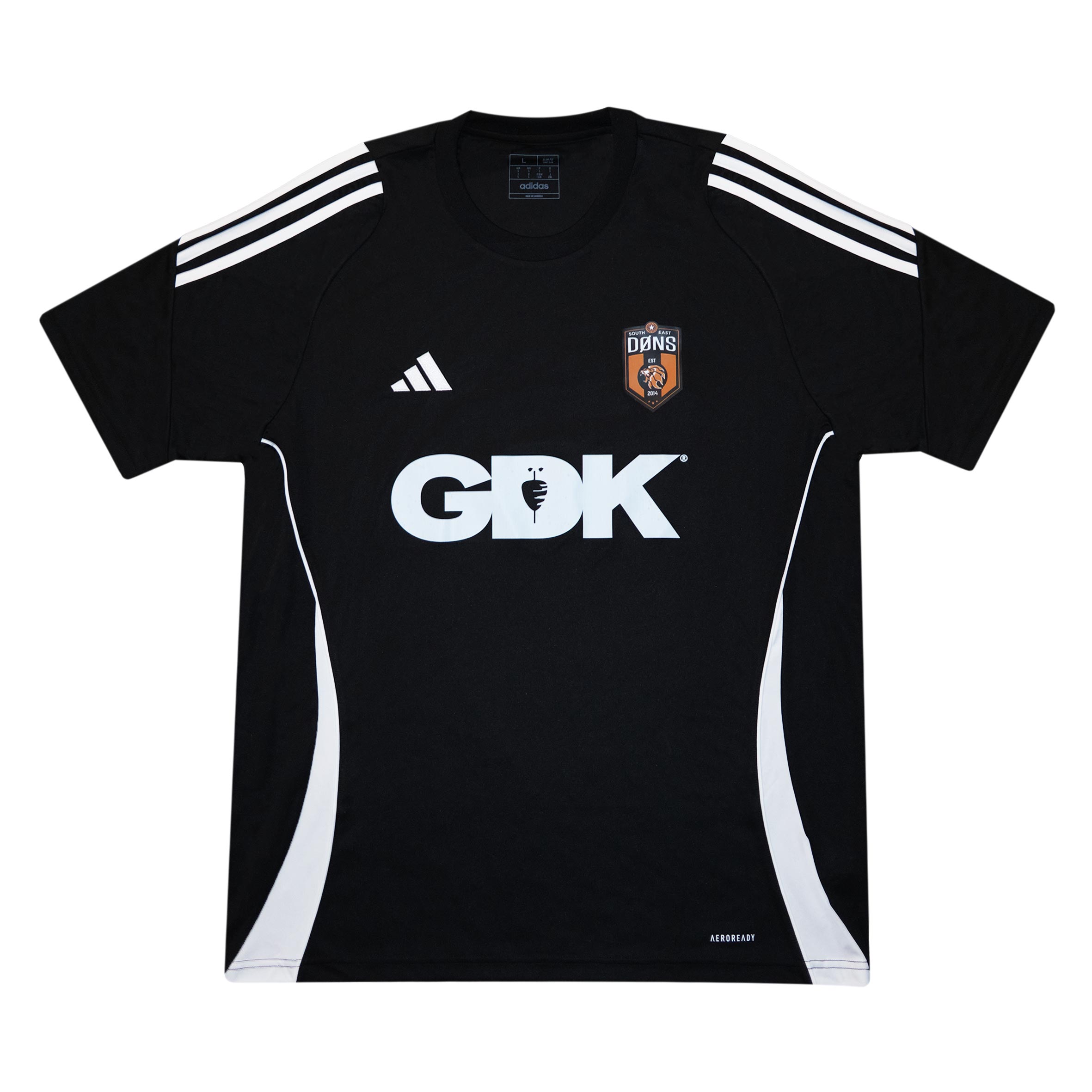 Introducing the Official Training Top — the official SE DØNS short-sleeve layer. Engineered with Adidas AEROREADY, built to breathe when the tempo rises. All-black base, cut with clean white contours, finished with the DØNS crest and GDK across the chest. This is more than a tee; it’s a statement of work. For double sessions. For extra reps. For the days nobody films but everybody feels. Light on the body. Heavy in meaning. This is where standards are set and excuses get left behind. The blackout doesn’t shine. It sharpens.